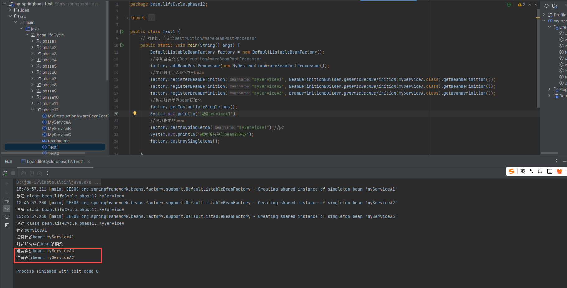 System.out.println("我是自定义的销毁方法:customDestroyMethod()");