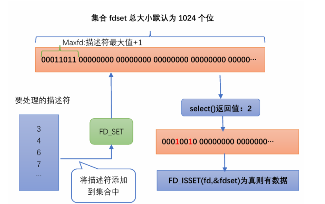 FD_SET(int fd, fd_set *fdset)//设置fd_set的位