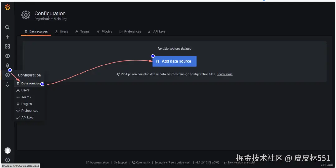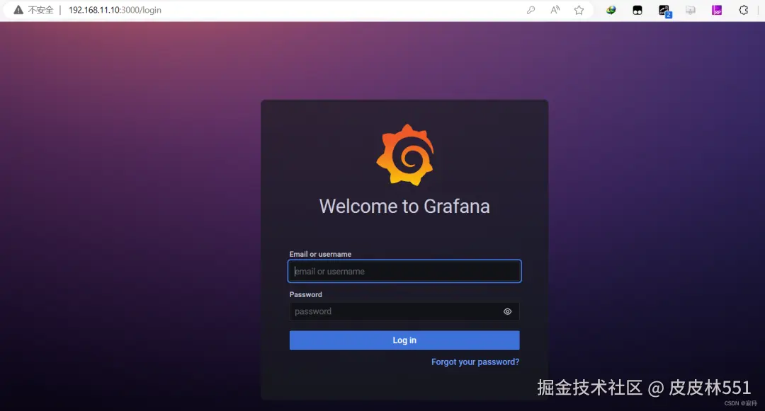打开地址: http://ip:3000 ,默认用户名和密码都是admin