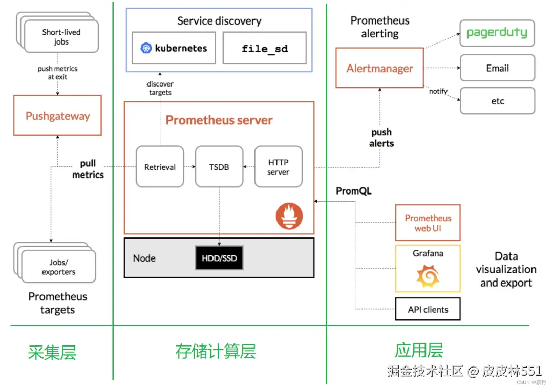 应用层主要分为两种,一种是 AlertManager,另一种是数据可视化。