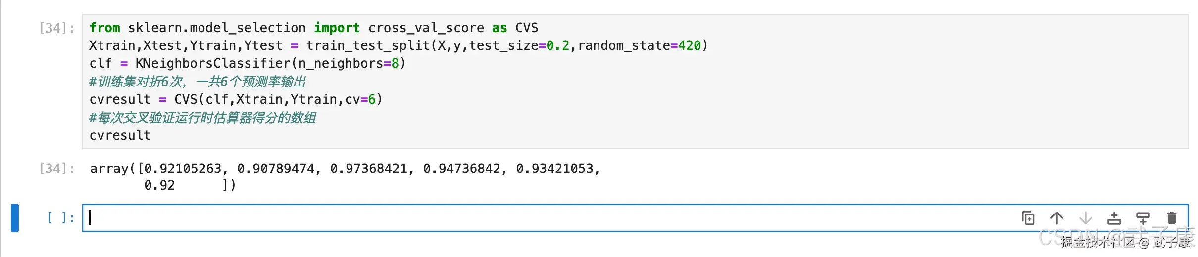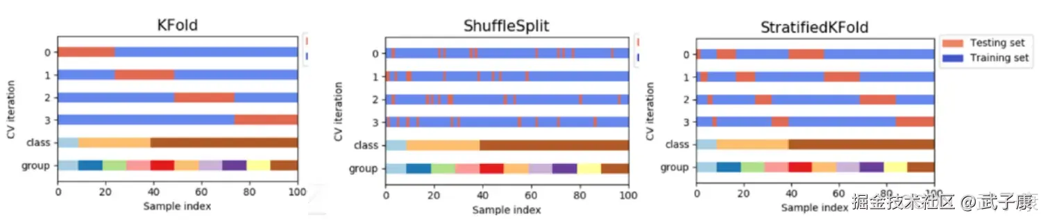 交叉验证的方法不止"K 折"一种,分割训练集和测试集的方法也不止一种,分门别类的交叉验证占据了 sklearn 中非常长的一章。 所有的交叉验证都是在分割训练集和测试集,只不过侧重的方向不同。