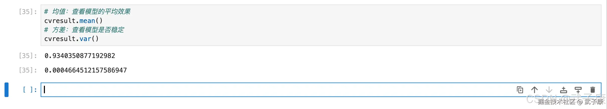 - 交叉验证后的模型的泛化能力增强了,表现它在未知数据集上方差更小,平均水平更高,但却无法保证它在现在分出来的测试集上预测能力最强