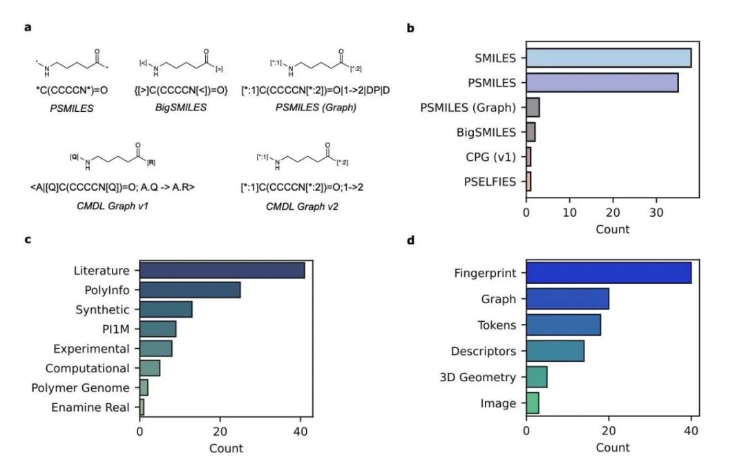 首先,这项工作值得称赞。为聚合物设计一种好的结构表示法是件麻烦事。它不像小分子那样结构固定。聚合物有重复单元、不同的链长、支链和复杂的拓扑结构。研究者们提出了一种基于 SMILES 的新颖图表示法,试图把这些关键特征都编码进去。