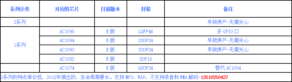 【AC1082-SOP16】【AC1074-QSOP24】【AC1090-QFP48】 这同属于AC109N系列