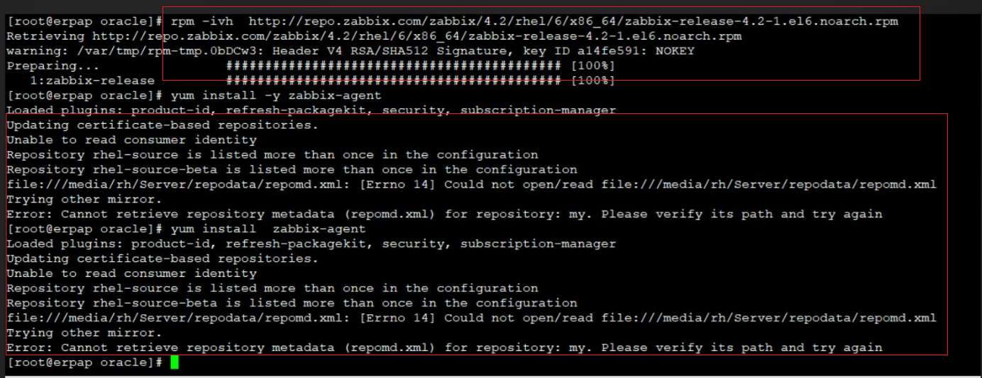 1.在Redhat 6.3安装zabbix-agent客户端 4.2版本,目前yum源未系统自带的源rhel-source.repo,出现如下报错