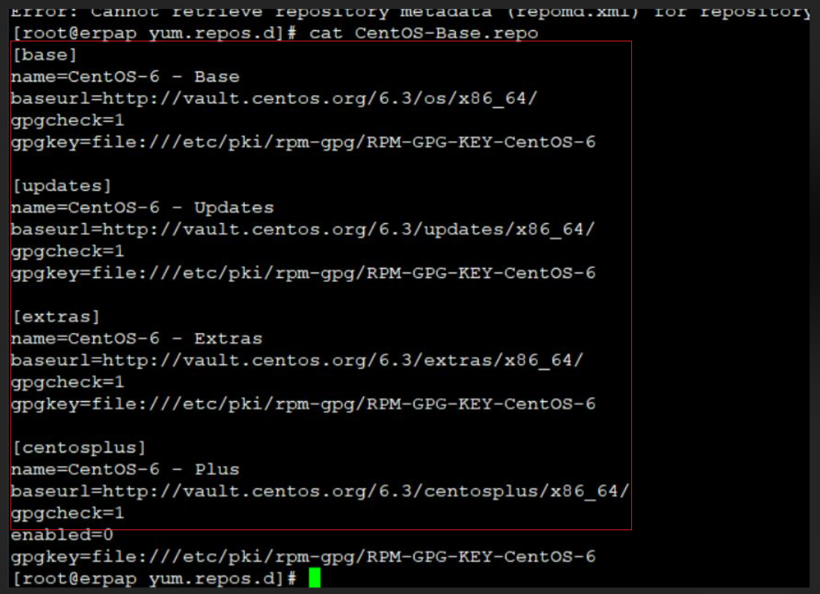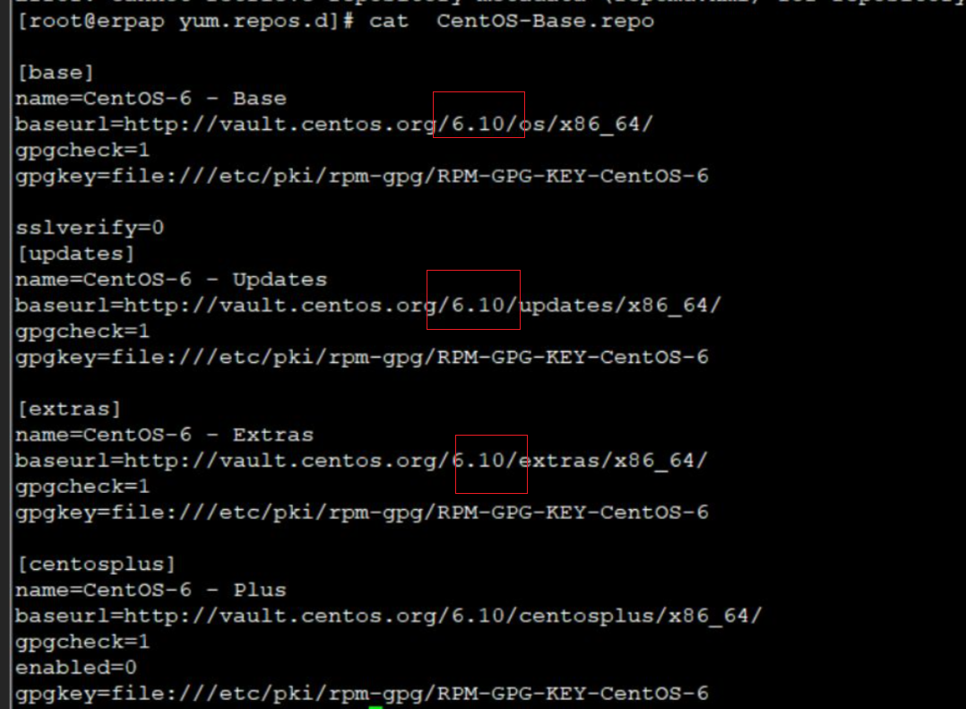 将CentOS-Base.repo的baseurl改为CentOS 6.10归档路径(6系列最新兼容版本):