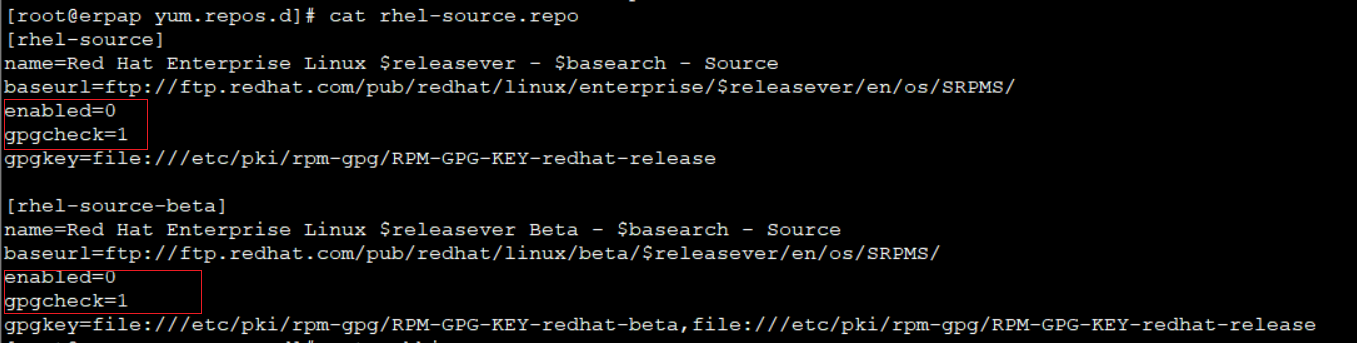 2.修改YUM源rhel-source.repo的内容如下关闭该YUM源仓库: