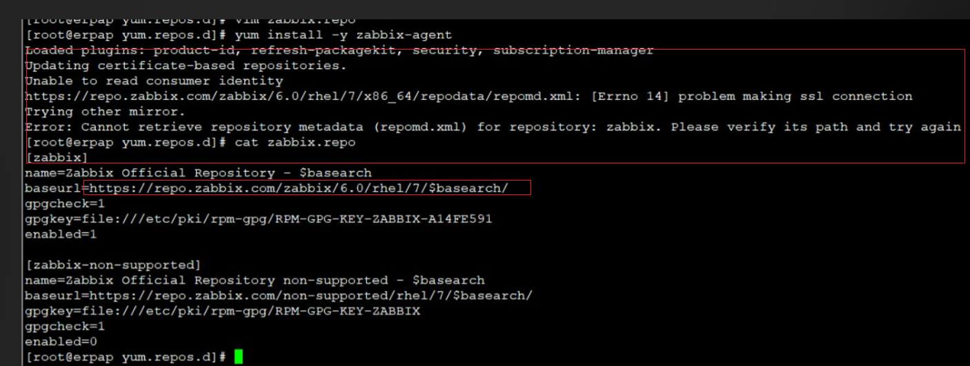 linux Redhat 6.3 官方早已经不在更新维护,软件源维护难度高,在安装软件包的的时候就会有这样那样的系统软件包不支持的问题。本文记录下在Redhat 6.3下安装zabbix-agent软件包,yum源无法使用的问题。