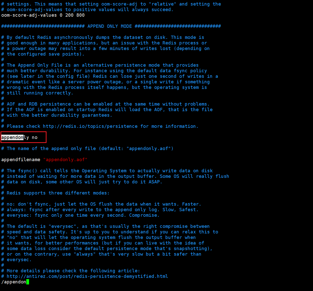 默认 aof 是关闭的,需要在配置文件打开。