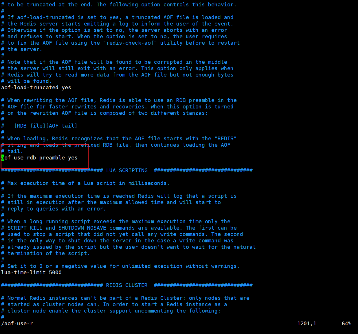 是否启用 混合持久 可以在配置文件中进行配置,默认为 yes ,即启用