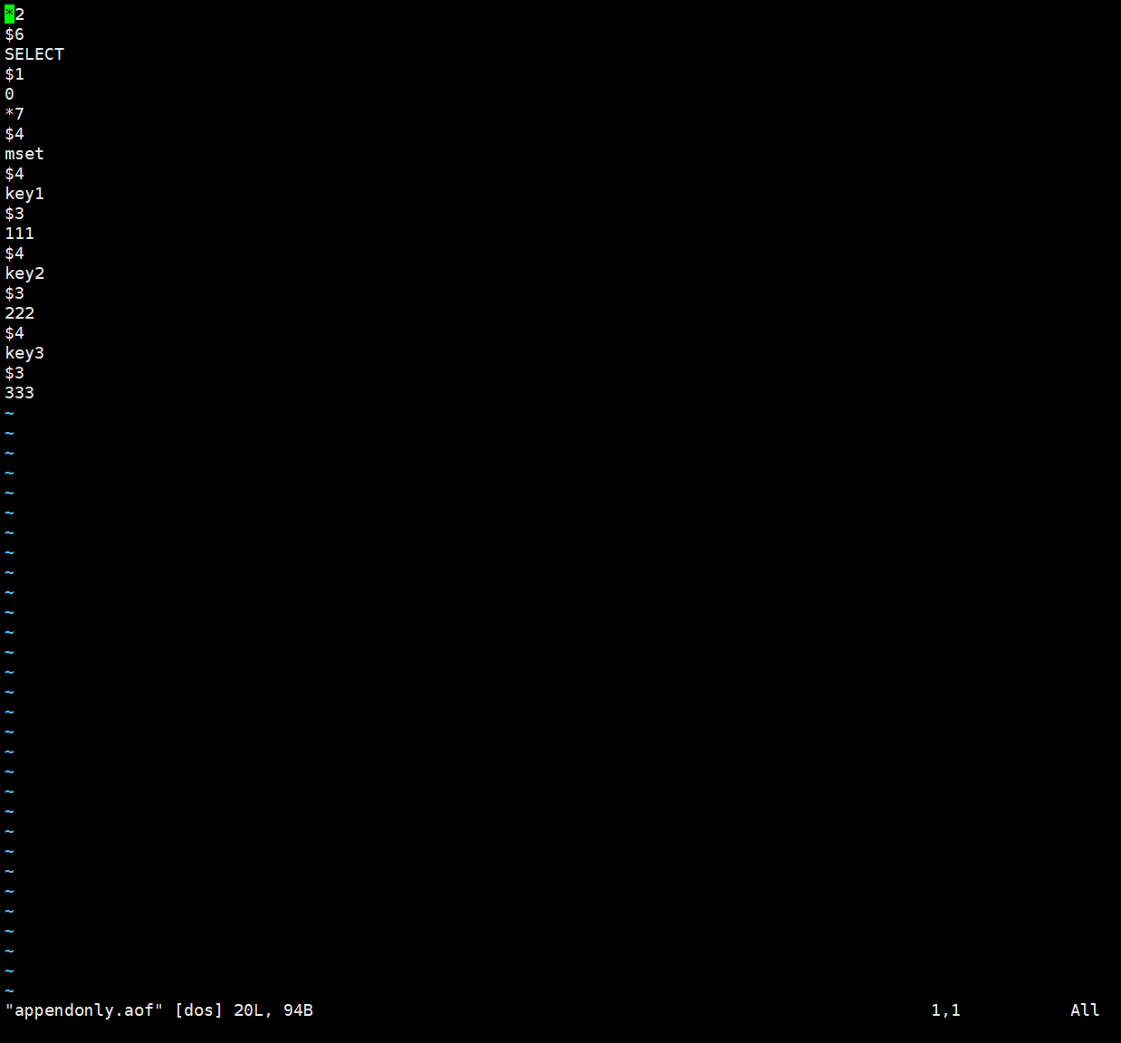 aof 是文本文件,默认位置和 rdb 相同,以 .aof 结尾。