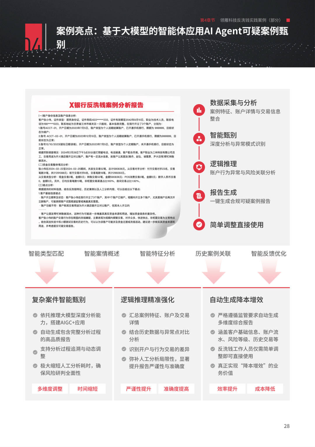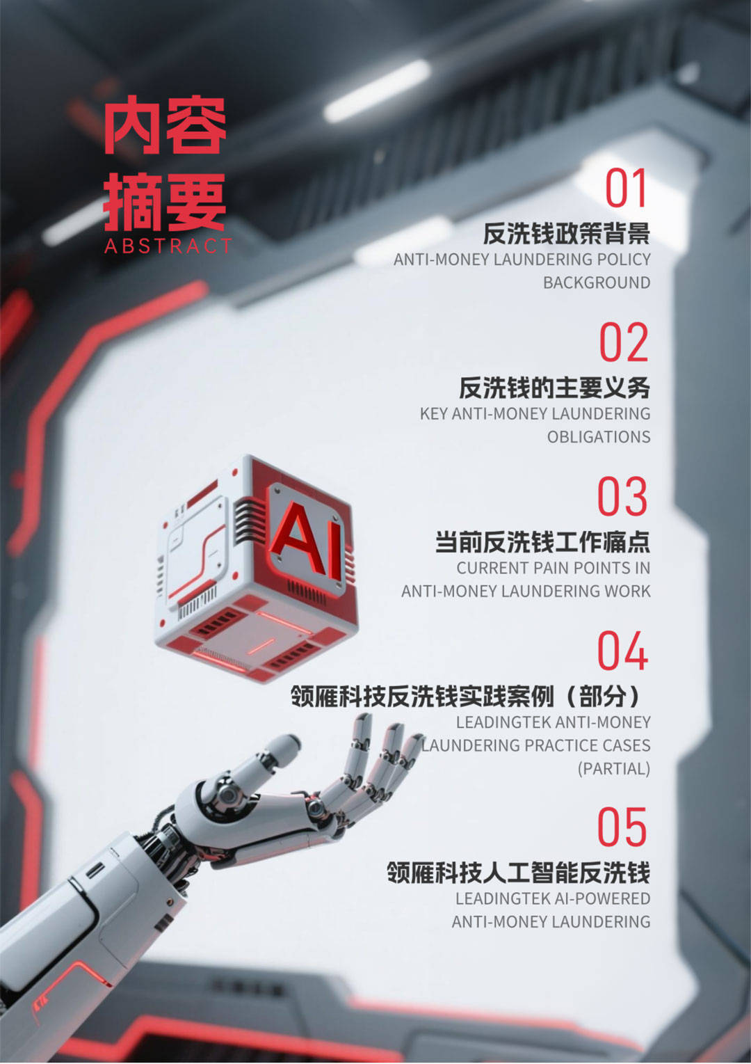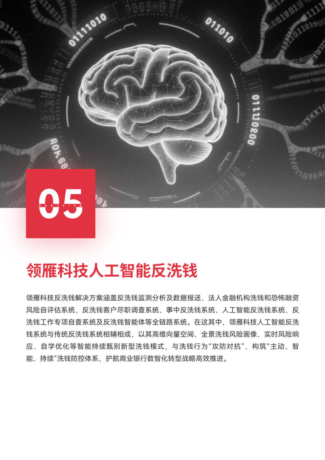 在此变革之际,领雁科技基于在反洗钱与金融合规领域近二十年的持续深耕,正式发布《数驭风险 智御新规------领雁科技反洗钱案例白皮书暨人工智能在反洗钱系统中的深度应用》白皮书。我们不仅见证了中国反洗钱体系的每一次演进,更深耕于上百家银行、证券、保险、金融租赁、财务公司等金融机构,为其提供从顶层咨询、管理体系构建、智能系统建设到全流程落地实施的服务,积累了穿越周期的宝贵经验。