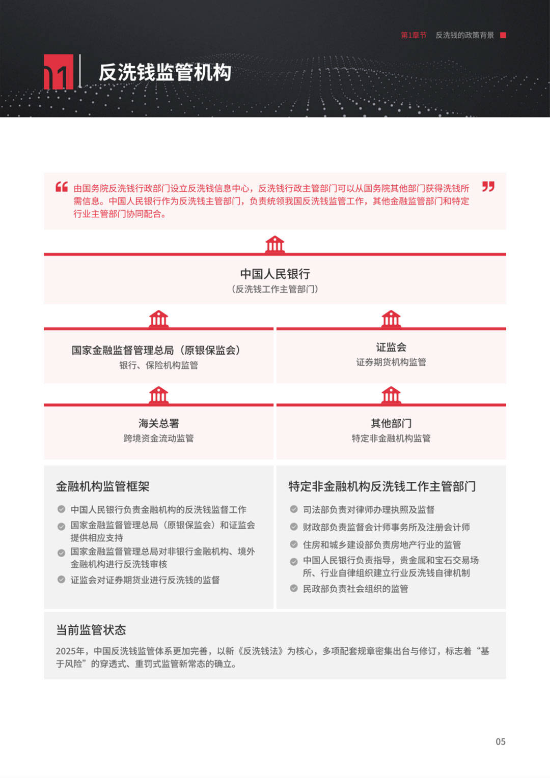 2025年,中国反洗钱监管迎来广泛升级。新《中华人民共和国反洗钱法》正式实施,重点管理办法《金融机构反洗钱和反恐怖融资监督管理办法》《金融机构大额交易和可疑交易报告管理办法》《反洗钱特别预防措施管理办法》等意见征求稿发布,以及《金融机构客户尽职调查和客户身份资料及交易记录保存管理办法》即将于2026年1月1日正式实施。