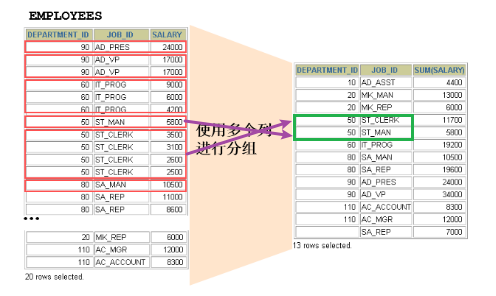 - 包含在 GROUP BY 子句中的列不必包含在SELECT 列表中(可以为了更直观表示在select字段加入额外的查询字段)