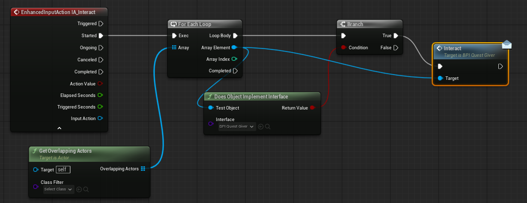 - 添加接口BPI_QuestGiver,其包含Interact函数,以供玩家调用;