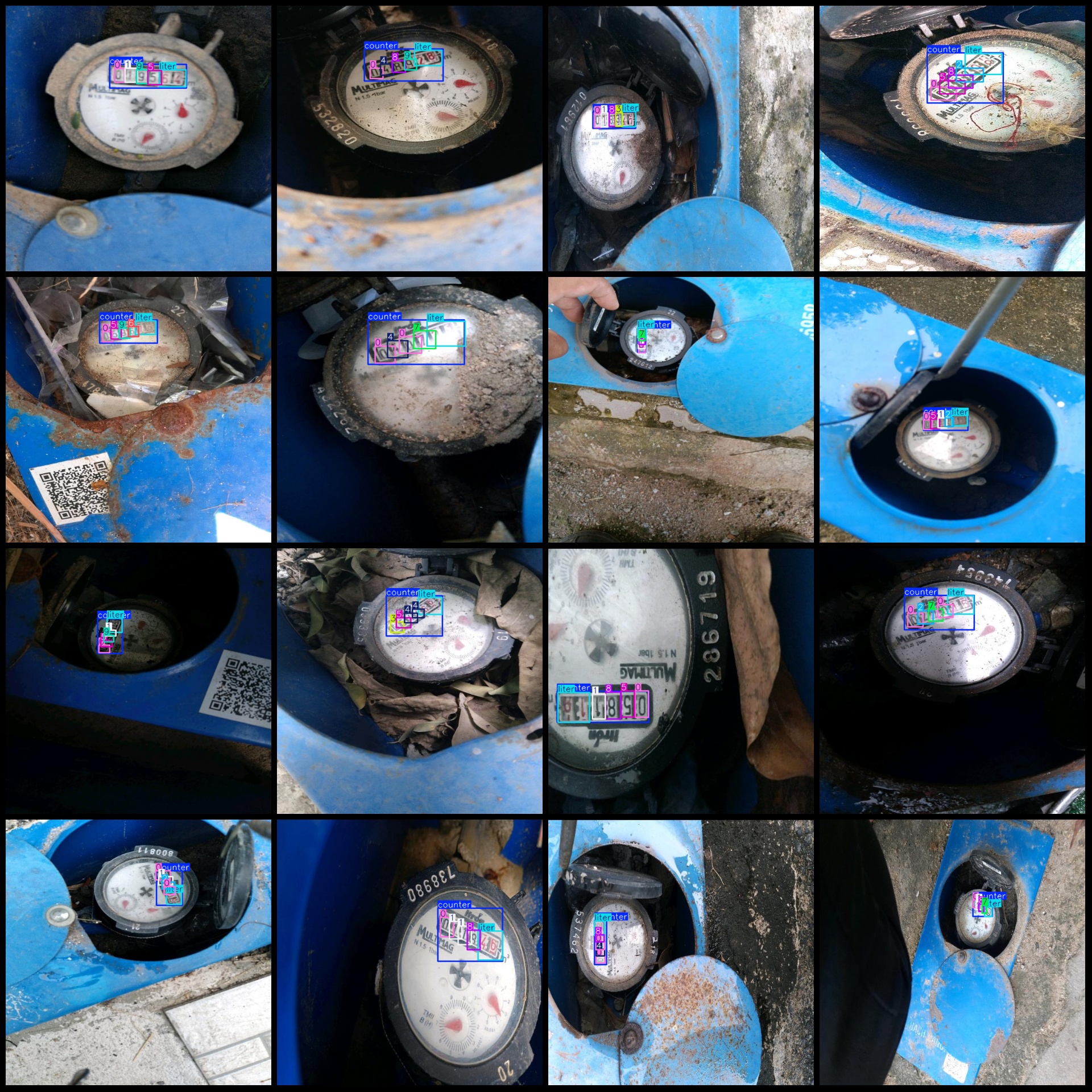 YOLOv8以其卓越的检测速度与高精度特性,能够快速解析水表图像中的数字信息,并精准定位计数器区域("counter")与单位标识("liter")。通过YOLOv8算法自动提取特征信息,完成数字识别与状态判断。此外,该系统支持多场景适配与动态追踪功能,可同时监测不同型号水表的读数变化,并兼容低光照、反光等复杂环境,如果增强数据集进行训练可以进一步提升了水务管理的精细化水平。