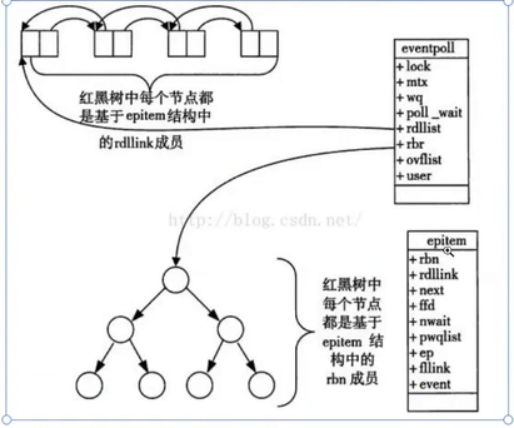 rbn:这个epitem作为节点存在于红黑树中。rdllink:同一个epitem也作为节点存在于就绪队列(双向链表)中。