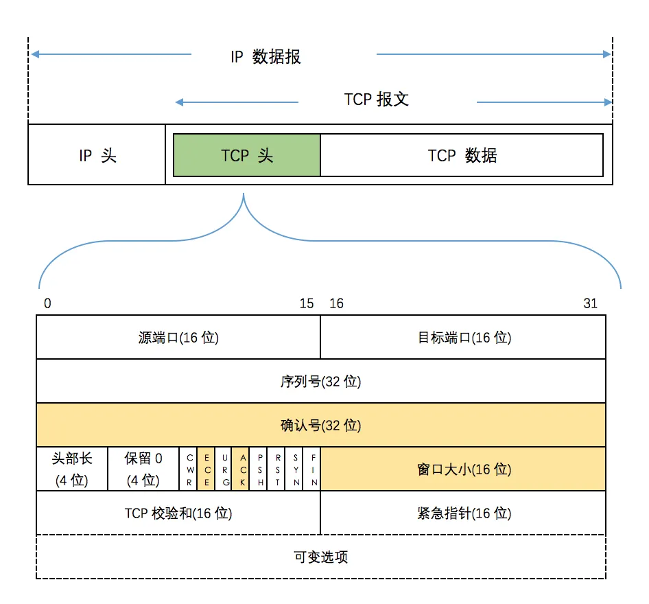 - 窗口大小:用于流量控制,表示接收方当前可接收的最大字节数,即接收缓冲区的剩余空间。
