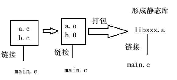 生成静态库的方式就是将.c文件形成.o文件,再将.o文件打包形成.a静态库,即可使用静态库。