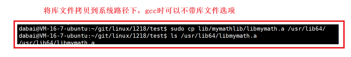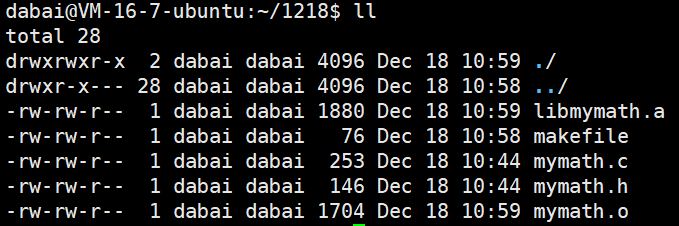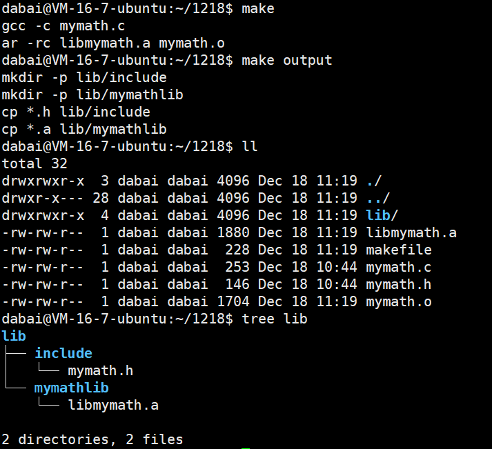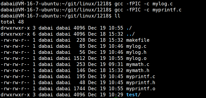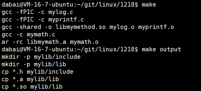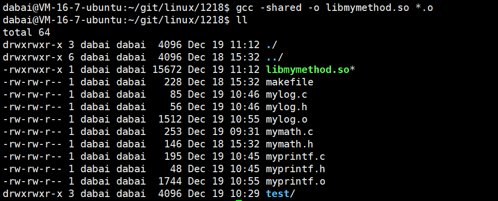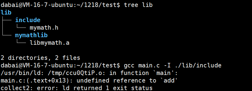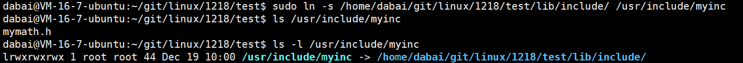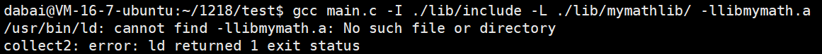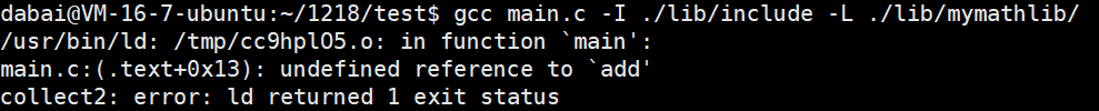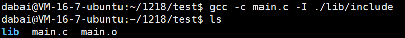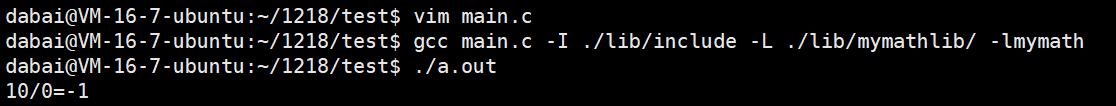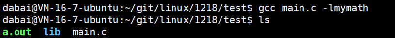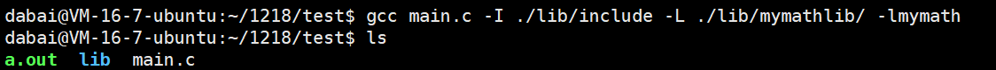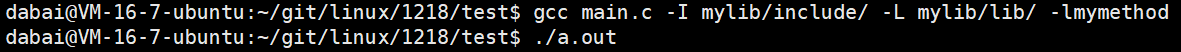 dabai@VM-16-7-ubuntu:~/git/linux/1218/test$ gcc main.c -I mylib/include/ -L mylib/lib/ -lmymethod
