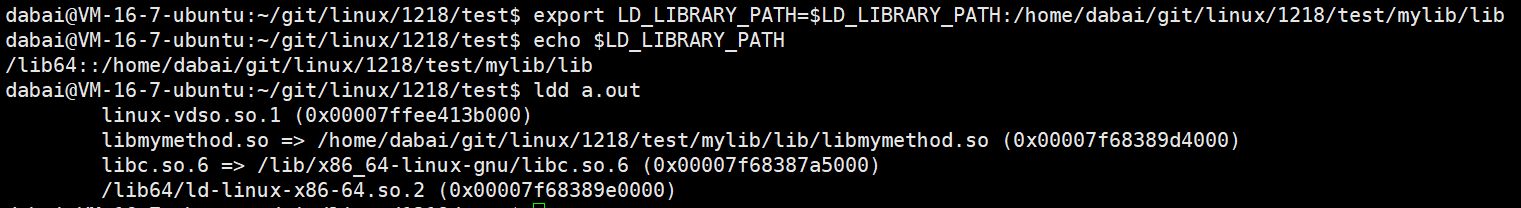 export LD_LIBRARY_PATH=$LD_LIBRARY_PATH:/home/dabai/git/linux/1218/test/mylib/lib