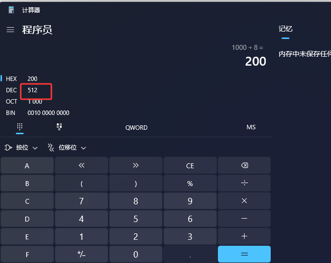 然后现在就应该知道全局句柄表的存放的逻辑了,接下来找一个,首先一个内存页的大小是0x1000,然后一个内存地址的大小是0x8,如下图0x1000除以0x8结果是512,也就是说一个内存页可以存放512个内存地址