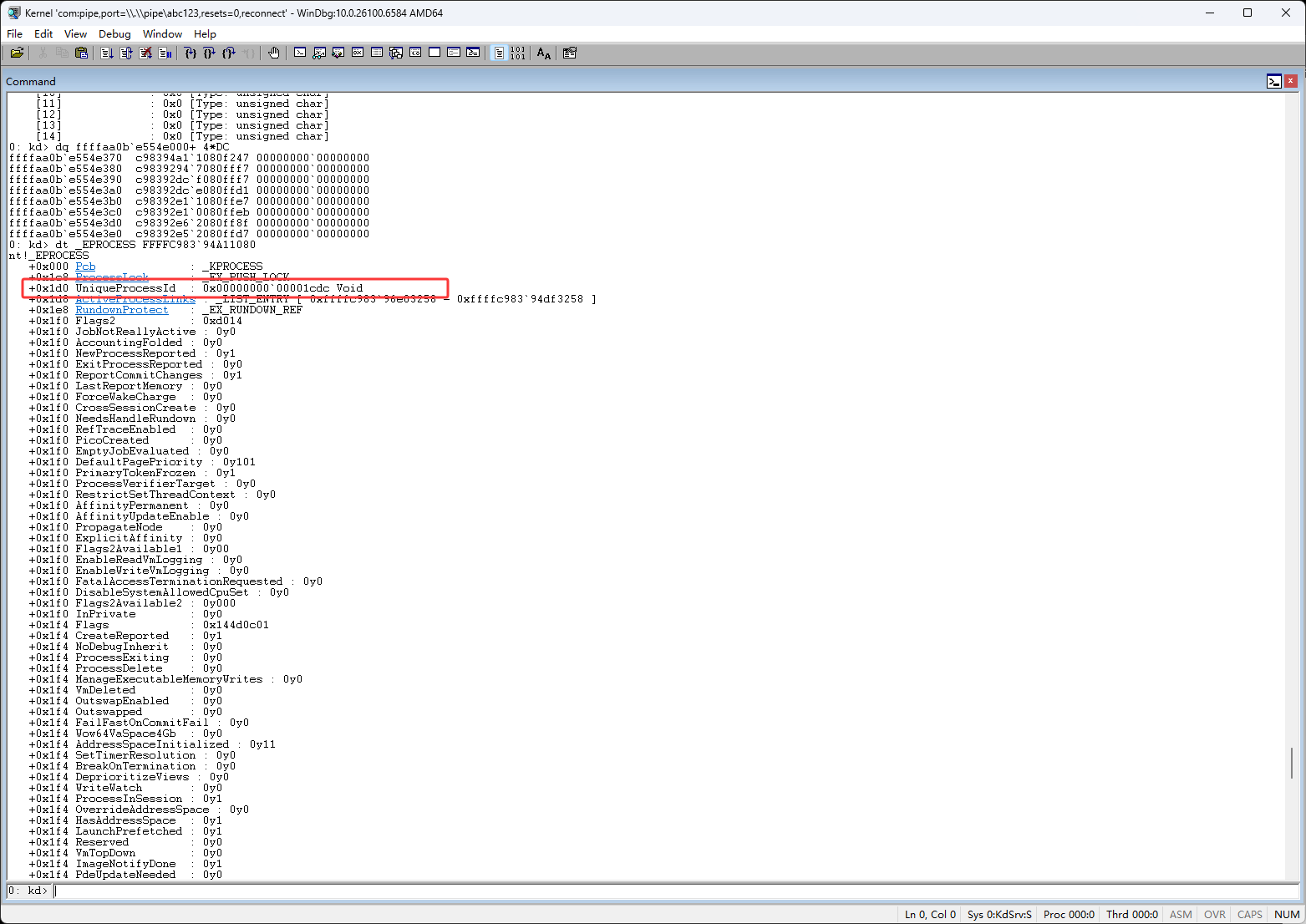 +0x1d0 UniqueProcessId : 0x00000000`00001cdc Void