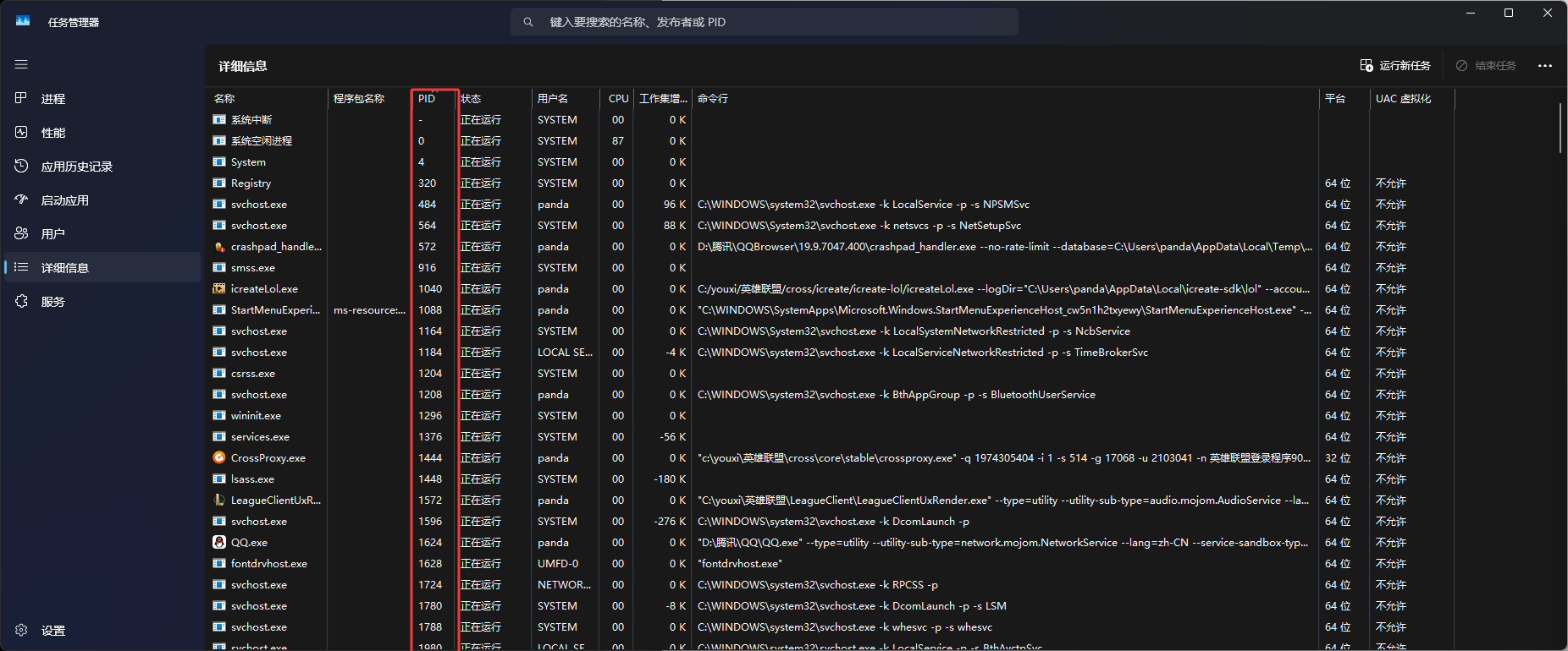 如下图红框任务管理器里的pid,它的内容都是4的倍数,但是可以看到从4直接跳到320了,这个原因是4到320之前是线程搞的,任务管理器里看不到,通过全局句柄才可以看得到