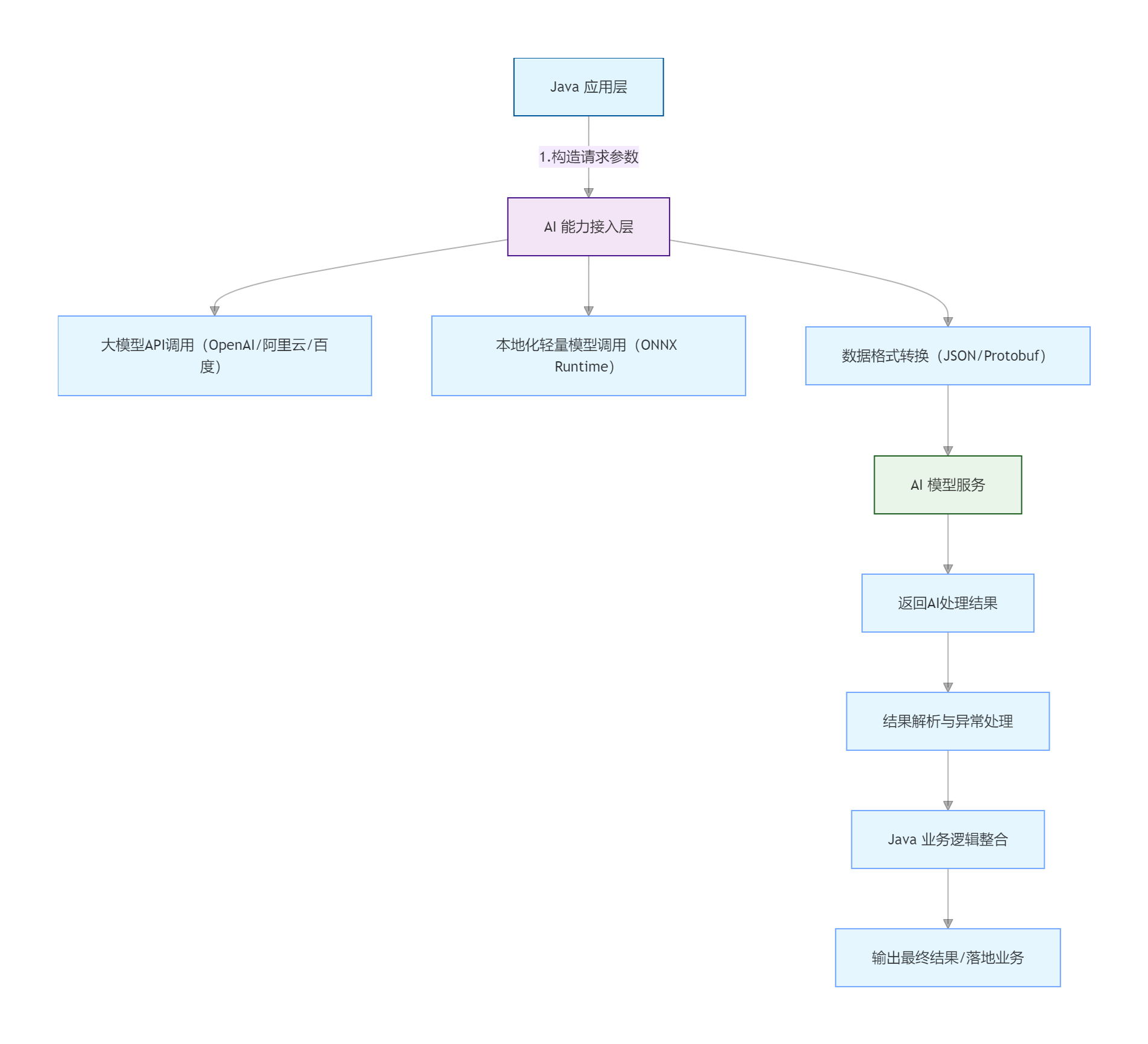 AI 能力接入层:Java 调用 AI 的核心桥梁(封装 API / 本地化调用工具);