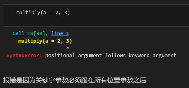 一旦用关键字参数,后面的所有参数必须都用关键字参数