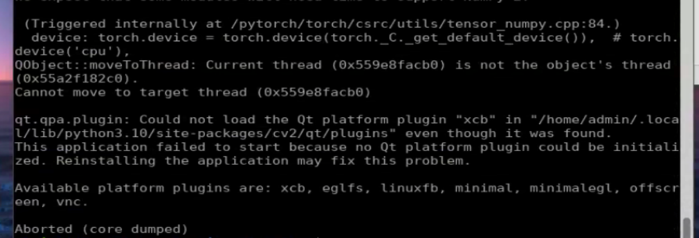 qt.qpa.plugin: Could not load the Qt platform plugin "xcb" in "/home/admin/.local/lib/python3.10/site-packages/cv2/qt/plugins" even though it was found.