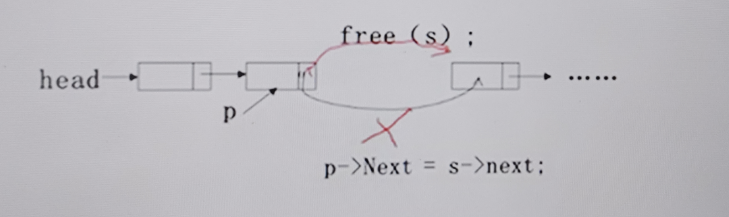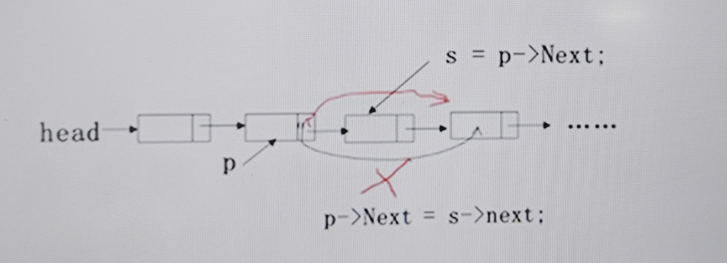 2.再用指针s指向要删除的结点(p的下一个结点);