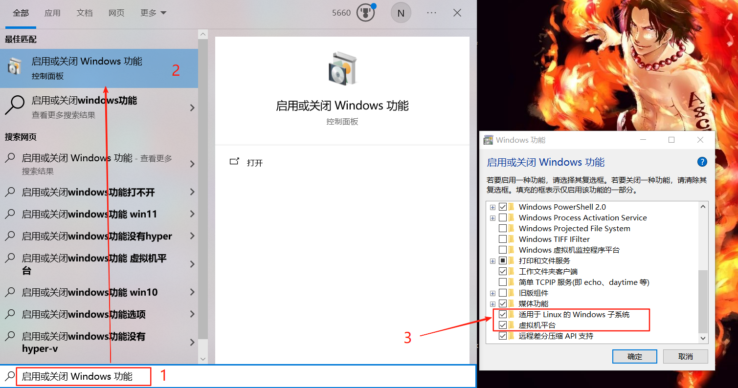 推荐安装 WSL 2, 在WSL基础上提供更优秀的性能和完整的系统调用兼容性。不过,WSL 2 要启用"虚拟机平台"功能才行。