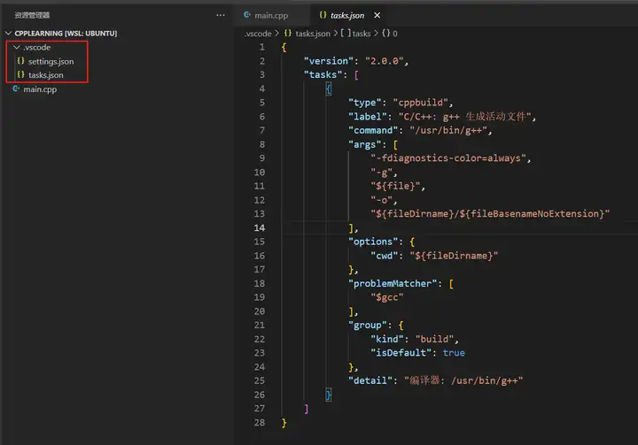 Makefile来定义编译规则。然后在tasks.json中调用make命令。 - CMake: 更现代和跨平台的工具。会自动处理源文件依赖和链接,大大的简化多文件项目的管理。