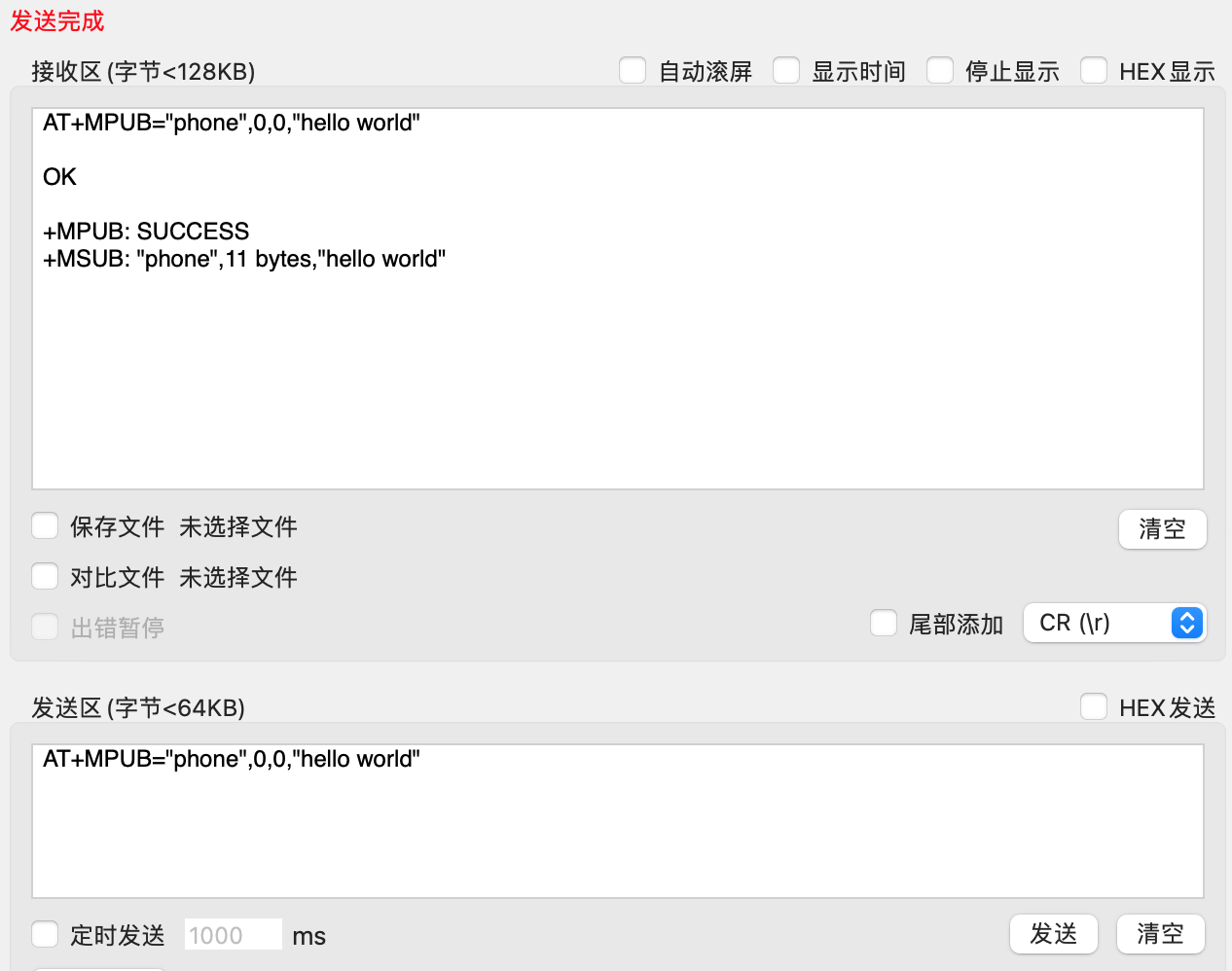 AT+MPUB="phone",0,0,"hello world"