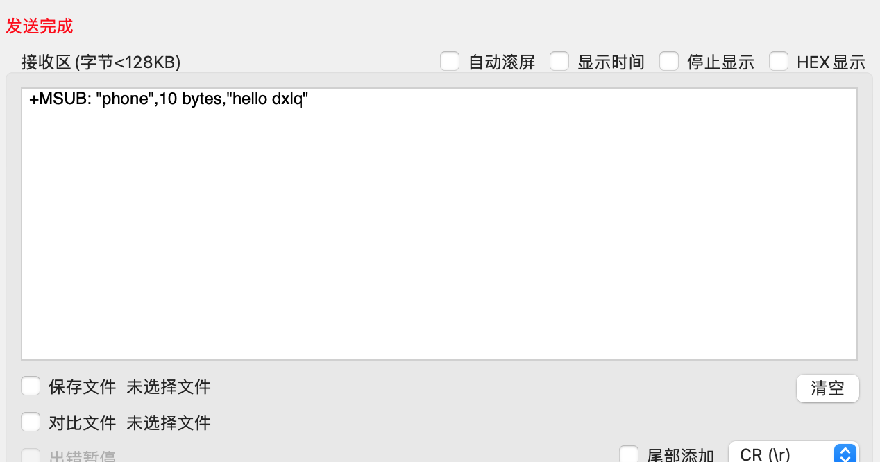2. 发送的数据长度需要与<msgLen>参数一致,长度不足则会等待输入