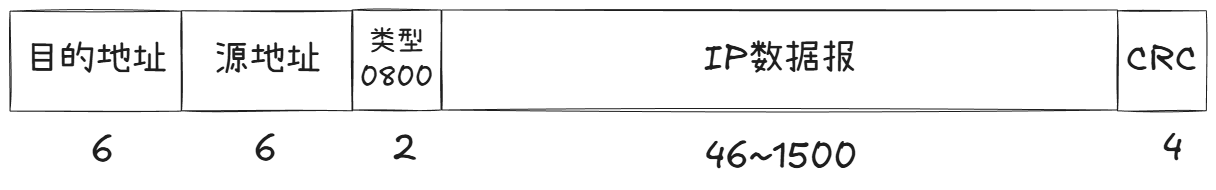 以太网帧最常见的上层协议就是IPv4,类型会填0800: