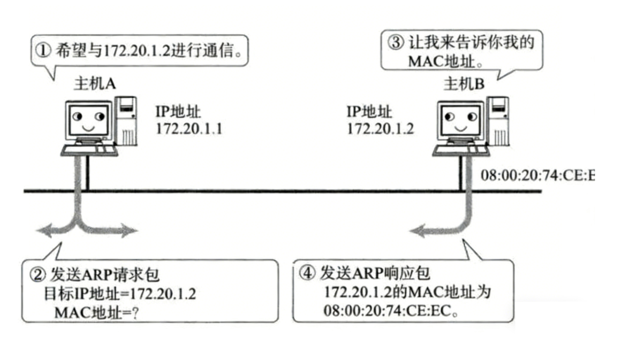 目的主机接收到广播的ARP请求,发现其中的IP地址与本机相符,则发送一个ARP应答数据包给源主机,将自己的硬件地址填写在应答包中;