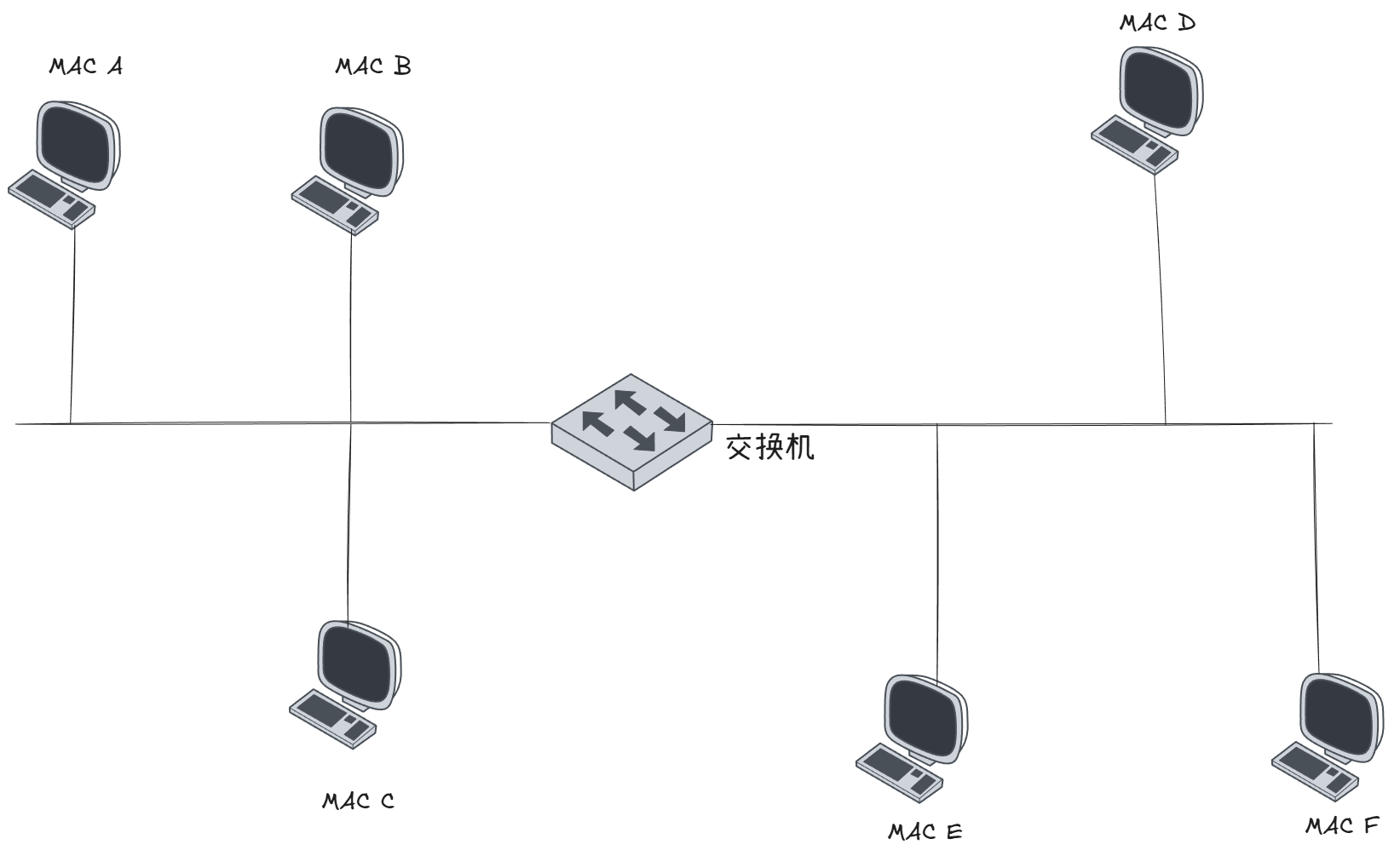 工作一段时间后,交换机就能摸清当前局域网的主机分布情况: