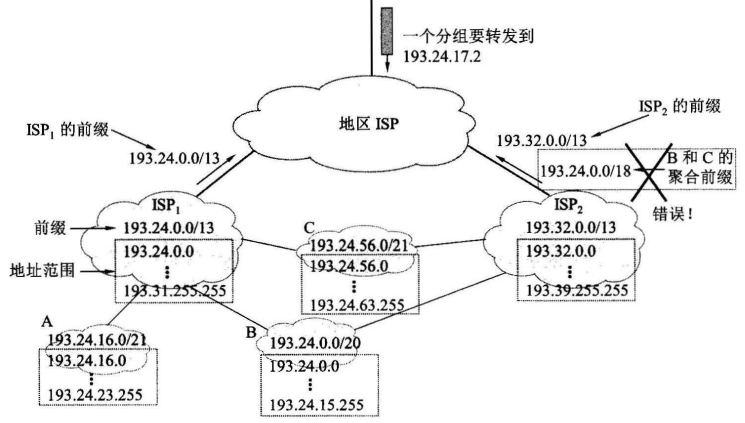 在效果上是不一样的!如果不采用 CIDR, 而直接给该单位分配 16个C 类地址块,那么就相当于给该单位分配了16个C类网络。这个单位对外界来说,是 16个C类网络。而每一个C类网络都要在本单位外面的路由表中占有一个表项,使得路由表更大了。当本单位内的许多主机相互通信时,由于跨越了不同的网络,因此都必须使用路由器来转发 IP 数据报。 可见由此造成的开销是很大的。因此,一般说来,这个单位不愿意接受 16 个C类地址块,而希望得到一个B类地址块(当然,这很难申请到)。实际上,一个B类地址块太大了。它相当于 256个C类地址块,而这个单位只需要 16个C类地址块,即只用到一个B 类地址块的 1/16 因此,对于只需要 16个C类地址块的单位,不应当给这个单位分配一个B类地址块,而是应当采用 CIDR 给这个单位分配一个地址块/20。