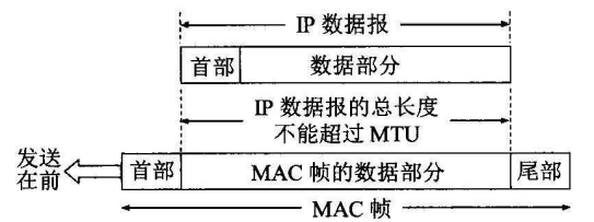 图表明 IP 数据报的总长度就是数据链路层的 MAC 帧的数据部分。但 MTU 在这个图中并未表示出来,因为 MTU是MAC 帧的数据部分的上限值。
