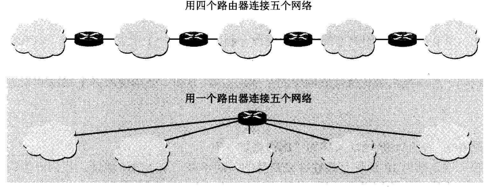 - (3) 按照互联网的观点,一个网络是指具有相同网络前缀的主机的集合,因此,用转发器或网桥连接起来的若干个局域网仍为一个网络,因为这些局域网都具有同样的网络前缀。具有不同网络前缀的局域网必须使用路由器进行互连。