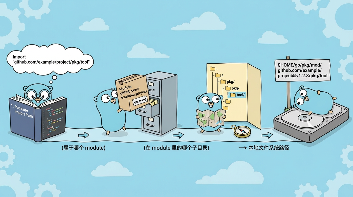 这篇只做一件事:讲清楚 import path 这串路径,怎么一步步变成"磁盘上的某个目录"。