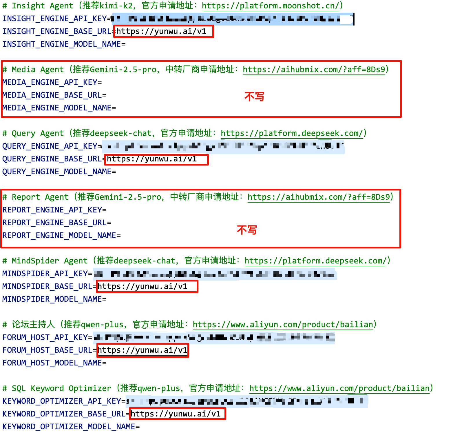 同样的还是在.env文件下,接下来就是大模型的配置了,也是最重要和最容易出错的一步。