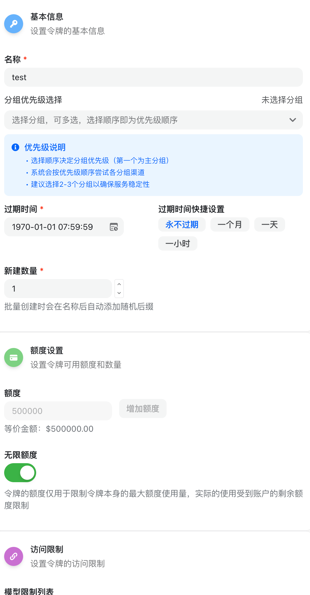 配置只需要对两处进行配置,分别是名称和额度设置,其他的不用处理