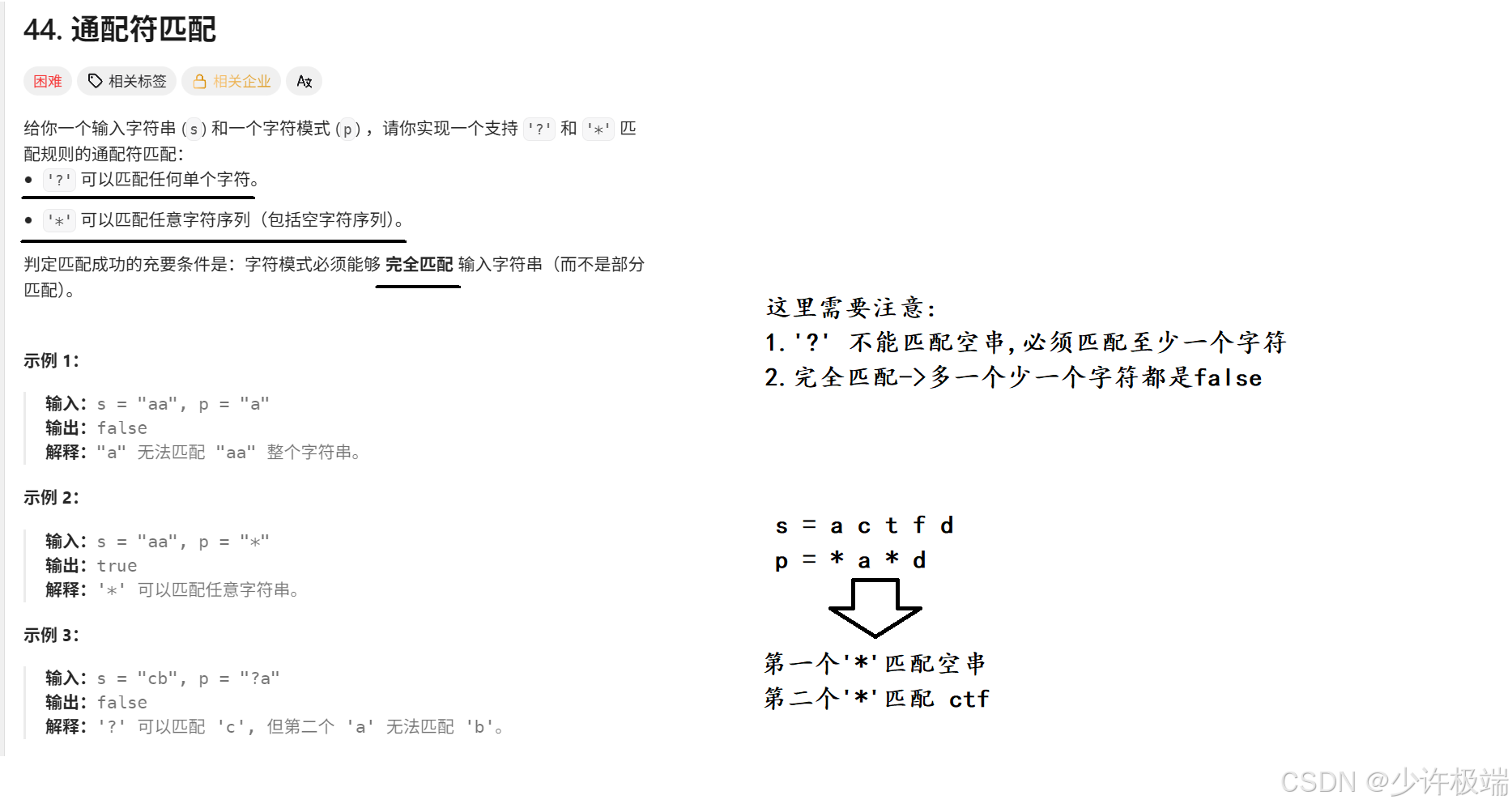 - [四. 力扣 [44. 通配符匹配](https://leetcode.cn/problems/wildcard-matching/description/)](#四. 力扣 44. 通配符匹配)