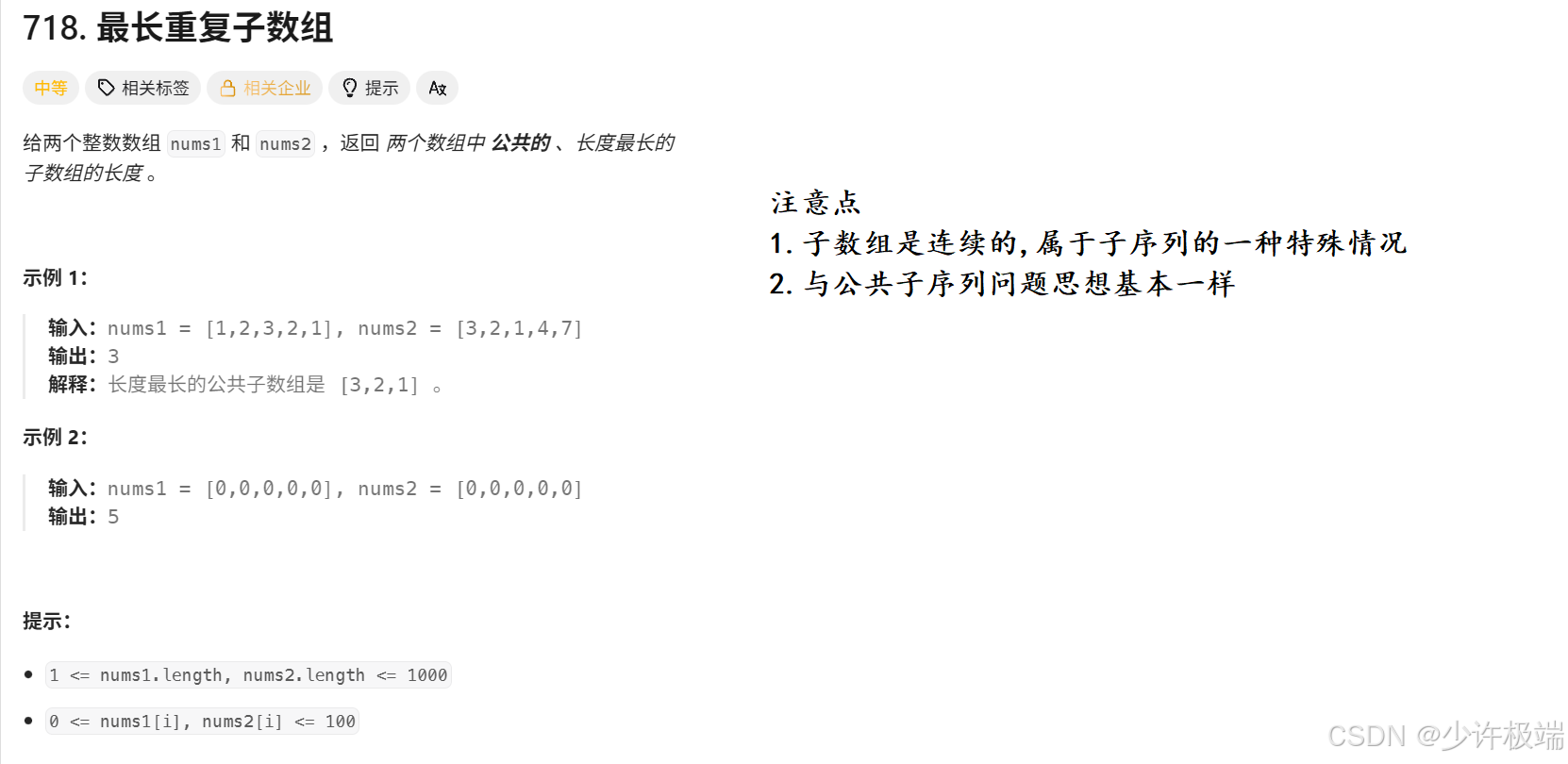 - [八. 力扣 [718. 最长重复子数组](https://leetcode.cn/problems/maximum-length-of-repeated-subarray/description/)](#八. 力扣 718. 最长重复子数组)
