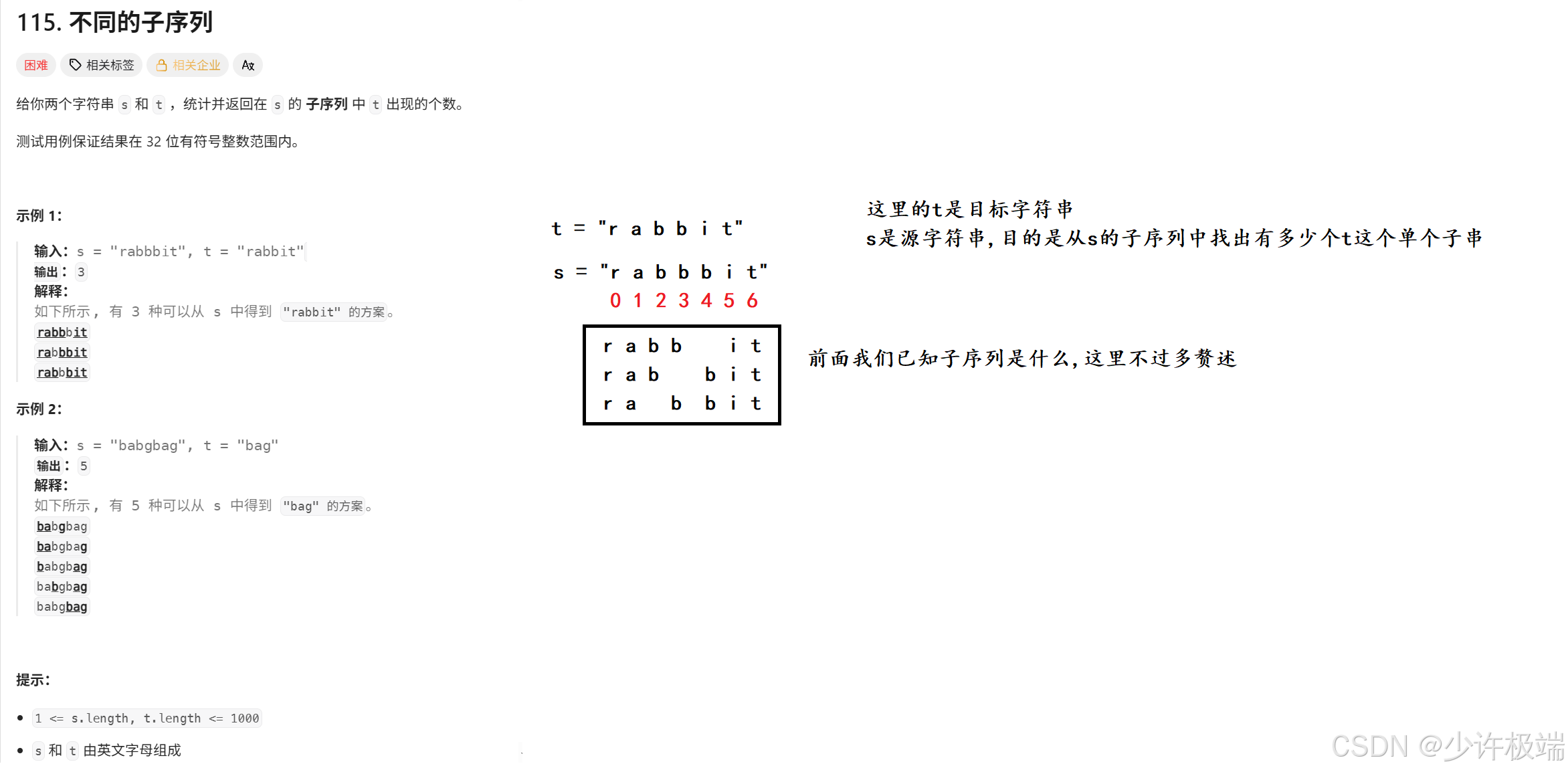- [三. 力扣 [115. 不同的子序列](https://leetcode.cn/problems/distinct-subsequences/description/)](#三. 力扣 115. 不同的子序列)