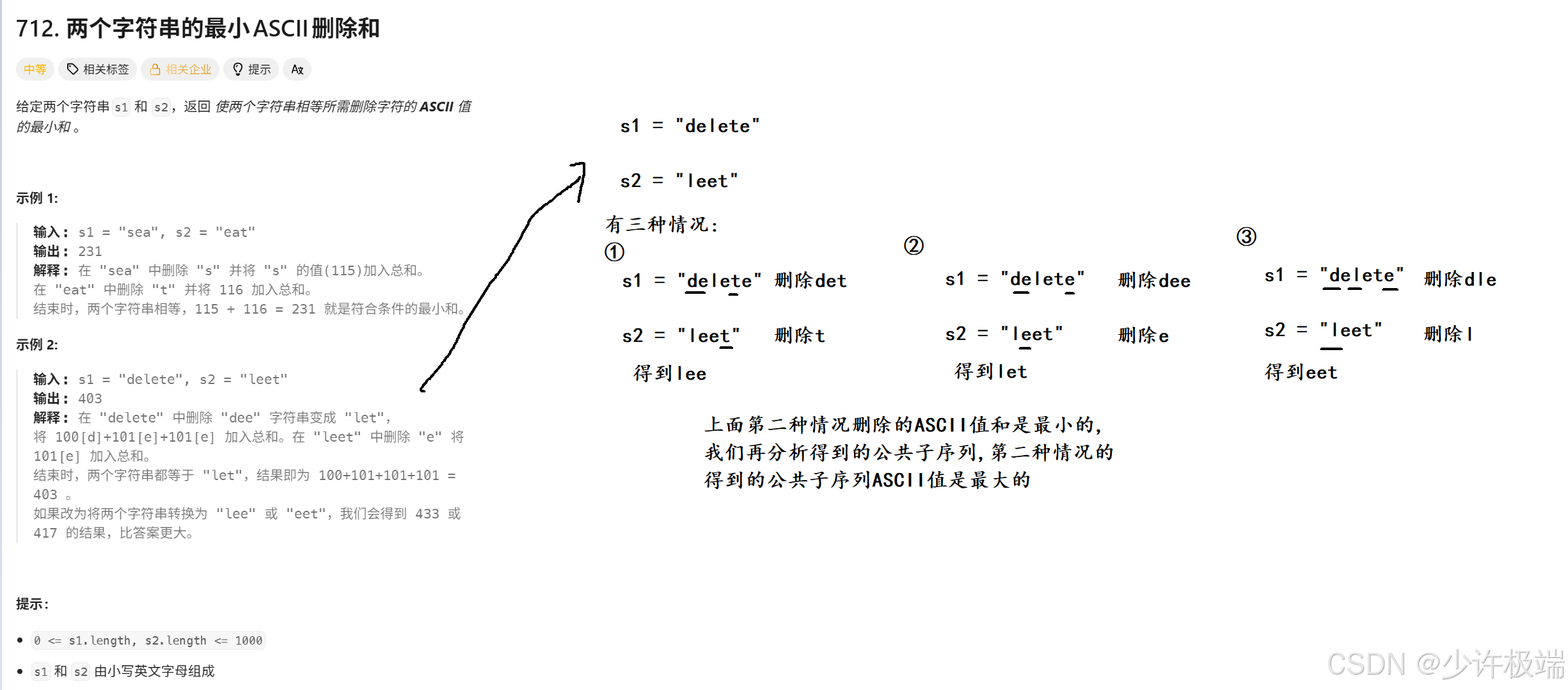 - [七. 力扣 [712. 两个字符串的最小ASCII删除和](https://leetcode.cn/problems/minimum-ascii-delete-sum-for-two-strings/description/)](#七. 力扣 712. 两个字符串的最小ASCII删除和)