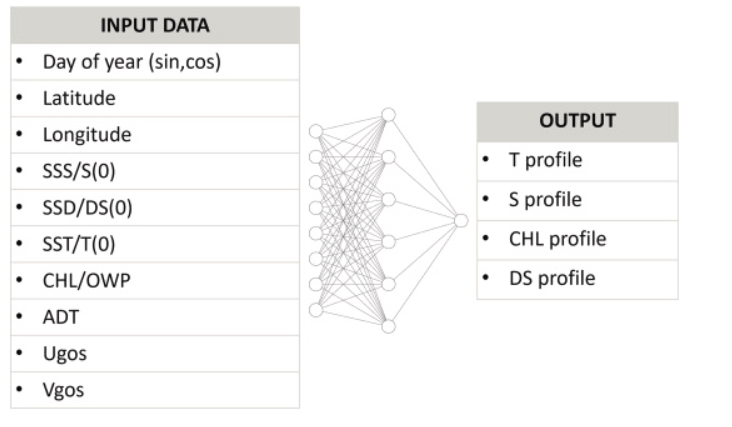 监测海洋的四维状态对于海洋生态系统的保护至关重要。人工智能算法代表了合并卫星和现场测量的有前途的工具,可以改善海洋内部动态的重建。在这里,我们描述了4DMED-bionet。这是一个基于人工智能的模型,由欧洲航天局4DMED-Sea项目开发,旨在从地表观测推断地下属性。该模型结合卷积神经网络和长短期记忆层,重建了地中海温度、盐度、密度和叶绿素-a的4D